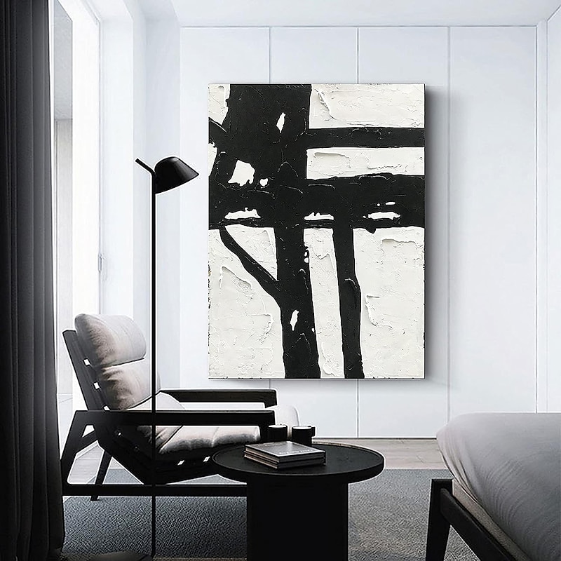 Handmade Oil Painting Canvas Wall Art Decoration Modern Abstract Black and White Simplicity for Home Decor Rolled Frameless Unstretched Painting 7