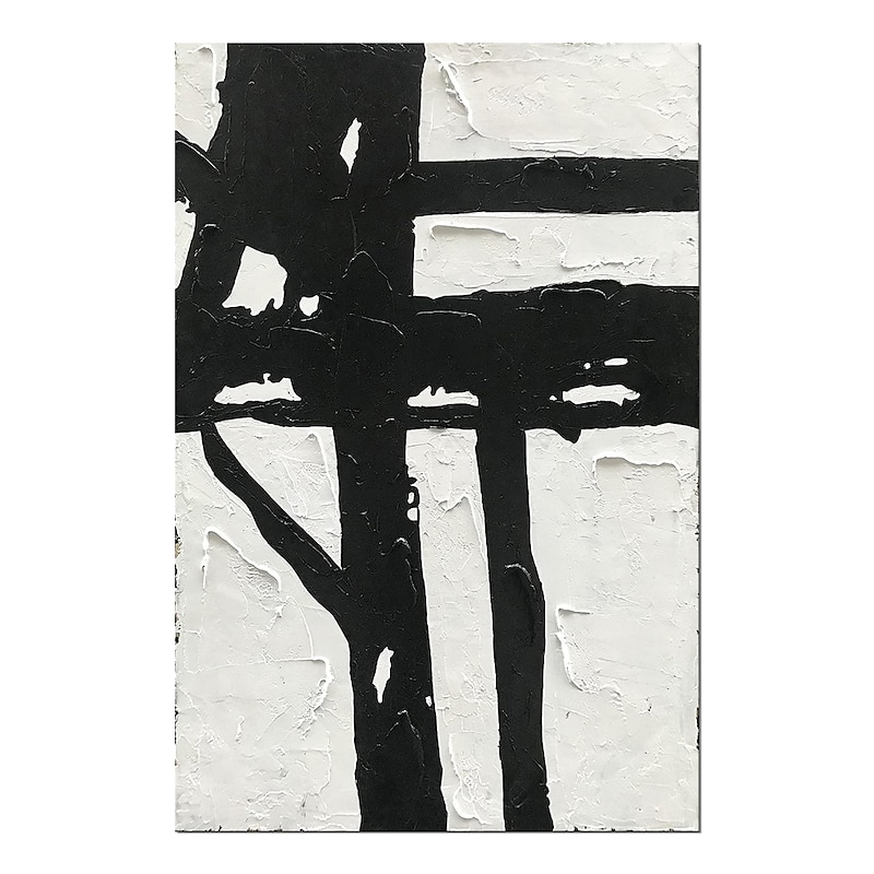 Handmade Oil Painting Canvas Wall Art Decoration Modern Abstract Black and White Simplicity for Home Decor Rolled Frameless Unstretched Painting 1