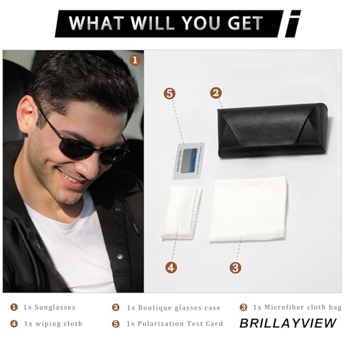 • 【HD Material—UV400 & TAC Polarized Lenses】BrillayView's square sunglasses polarized lenses block 100% of harmful UVA & UVB rays, reducing glare reflected off roads, bodies of water, snow, and other horizontal surfaces. In addition to UV protection over,they improve contrast and visual clarity, allow for true perception of colors, enhance visual comfort, and effectively reduce eye strain,and without any haze or optical distortion.