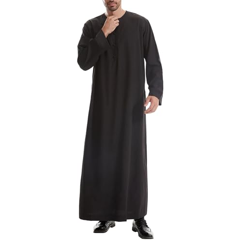 HOT ! Long Sleeve Muslim Thobe for Men, Mens Caftans Big and Tall Arabic Clothes Islam Muslim Thobes Jalabiya