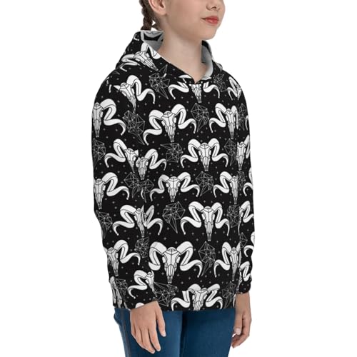 Skull with Polygonal Ornament Kid Hoodies Boys Sweatshirts Girls Pullover with Pocket 7