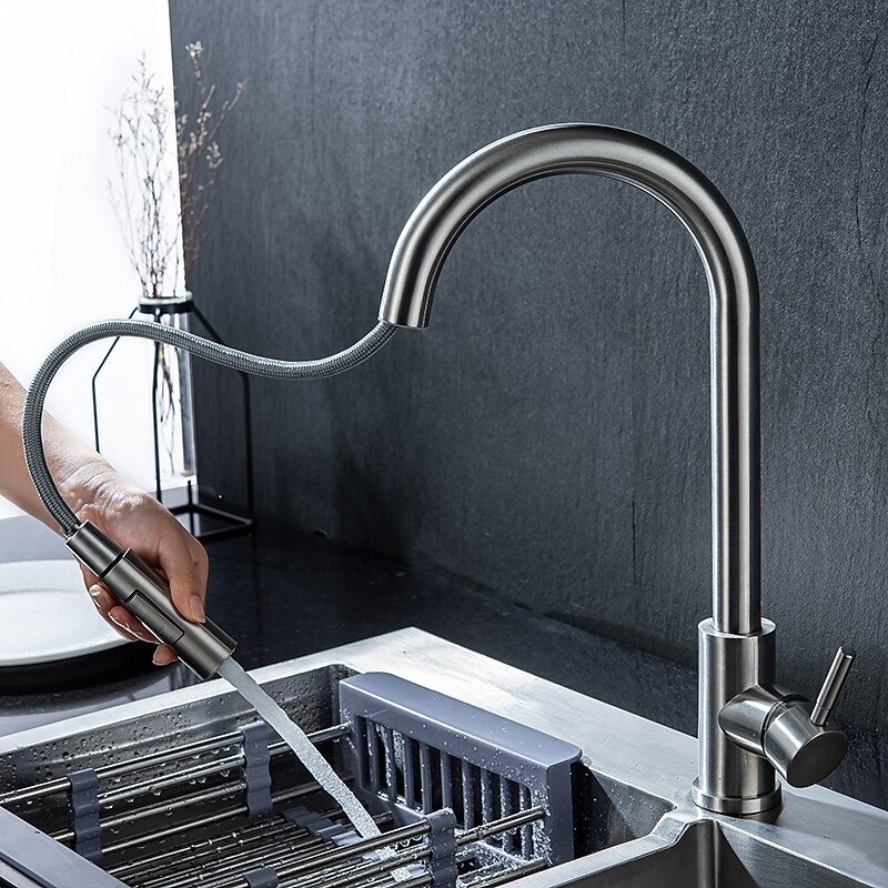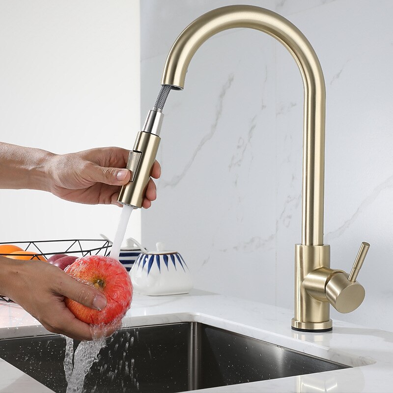 This Kitchen Sink Mixer Faucet Stainless Steel with Pull Out Sprayer, 360° Rotatable Multi-function Pull Down Single Handle Kitchen Vessel Tap Brushed Gold Finish combines elegant design with practical functionality. Every detail has been carefully considered to ensure you get the top possible experience. The supreme construction means this product will serve you well for years to come.