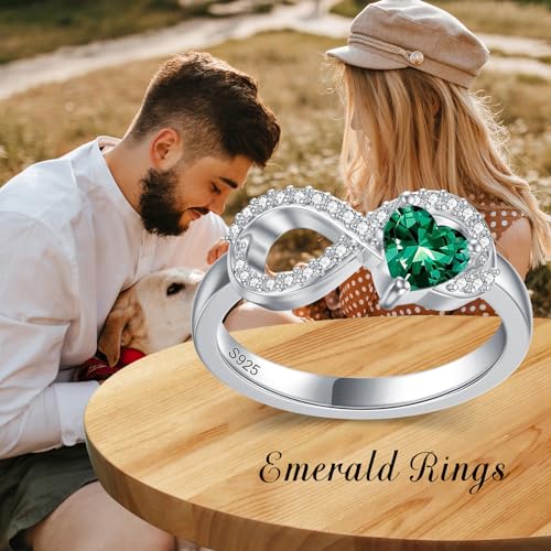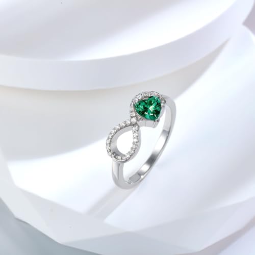 Infinity Ring for Women 925 Sterling Silver Heart Cut Emerald Engagement Promise Ring for Her 7