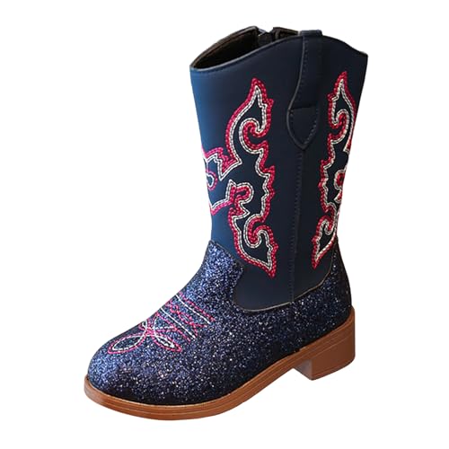 HOT ! Cowgirl Boots for Girls Child Mid Calf Glitter Cowboy Boot Little Big Kids Western Riding Shoes Western Square Toe Girls Sparkle Boots Zipper Low Heel