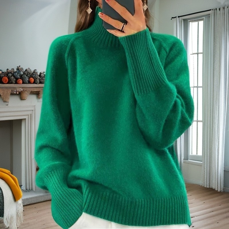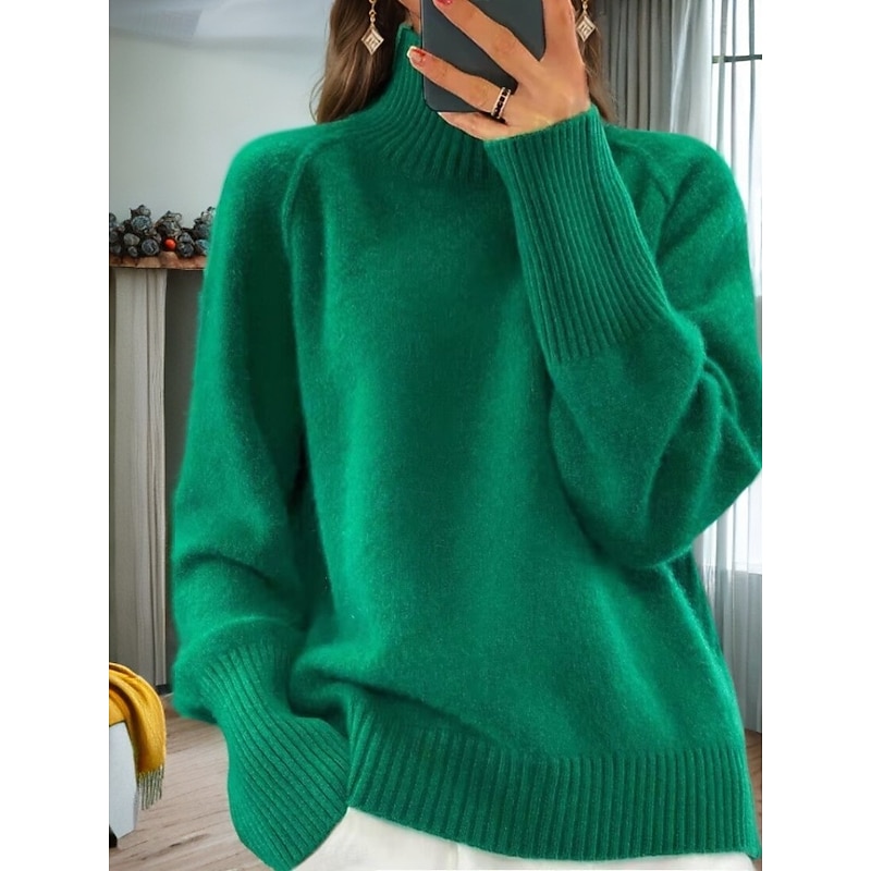 Women's Sweater Pullover Sweater Jumper Turtleneck Knit Knitted Raglan Sleeves Spring Fall Home Daily Holiday Daily Casual Soft Long Sleeve Pure Color White Light Green