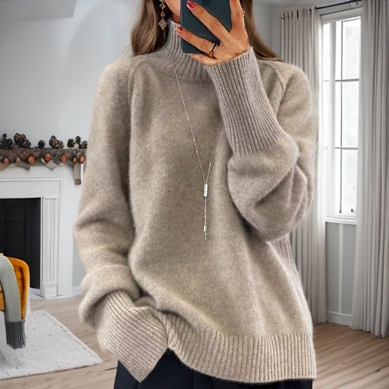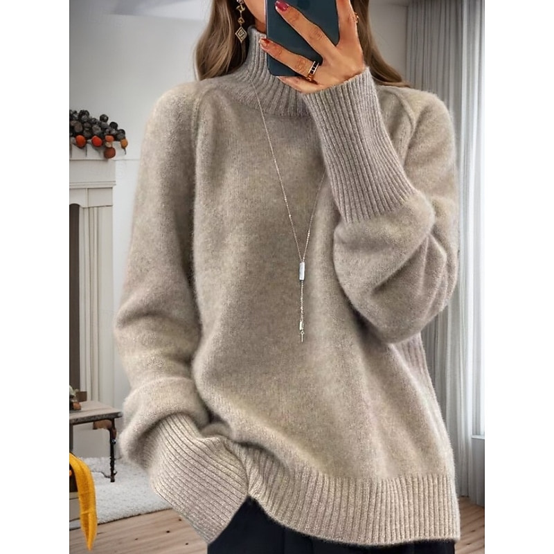 Featuring a regular fit, this pullover sweater is designed for versatile wear. Its turtleneck style adds a touch of elegance, ideal for both casual and slightly more dressy outfits. The relaxed fit allows for easy pairing with various wardrobe staples.
