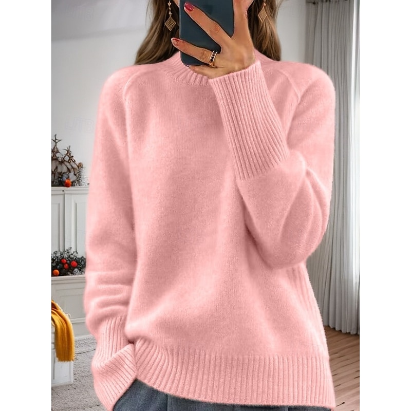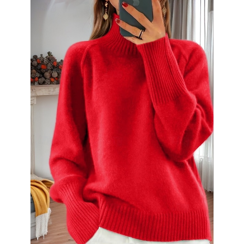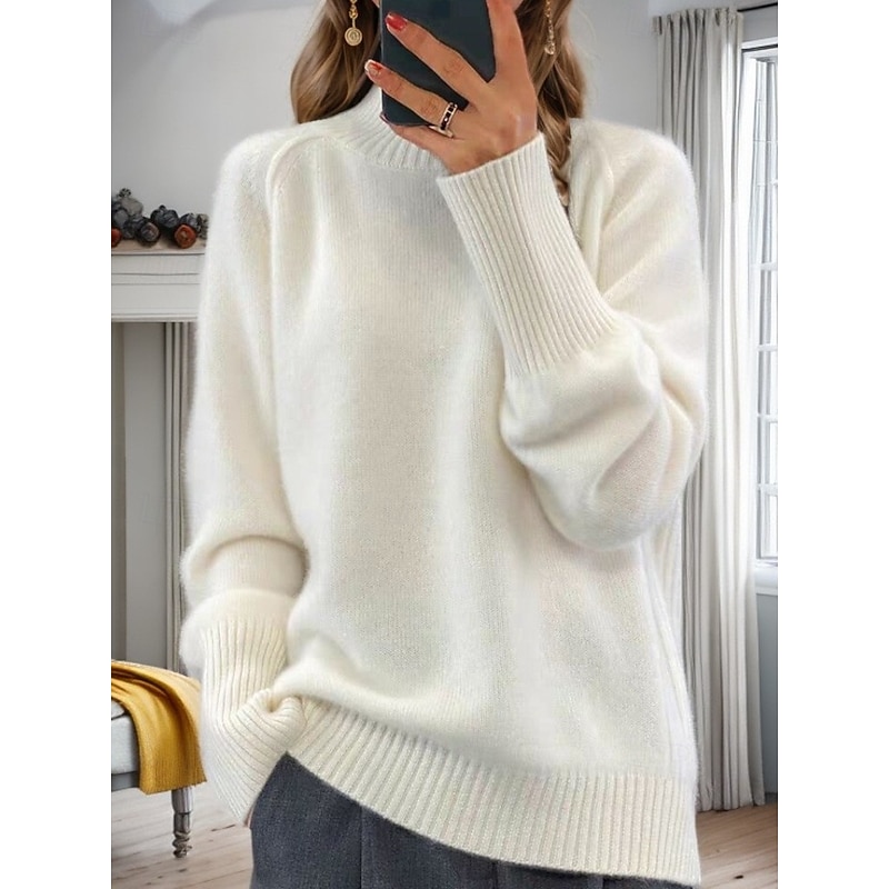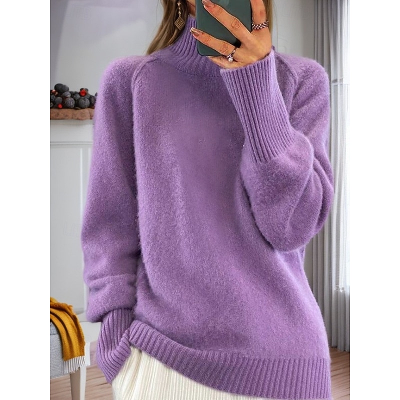 More information about Women's Sweater Pullover Sweater Jumper Turtleneck Knit Knitted Raglan Sleeves Spring Fall Home Daily Holiday Daily Casual Soft Long Sleeve Pure Color White Light Green