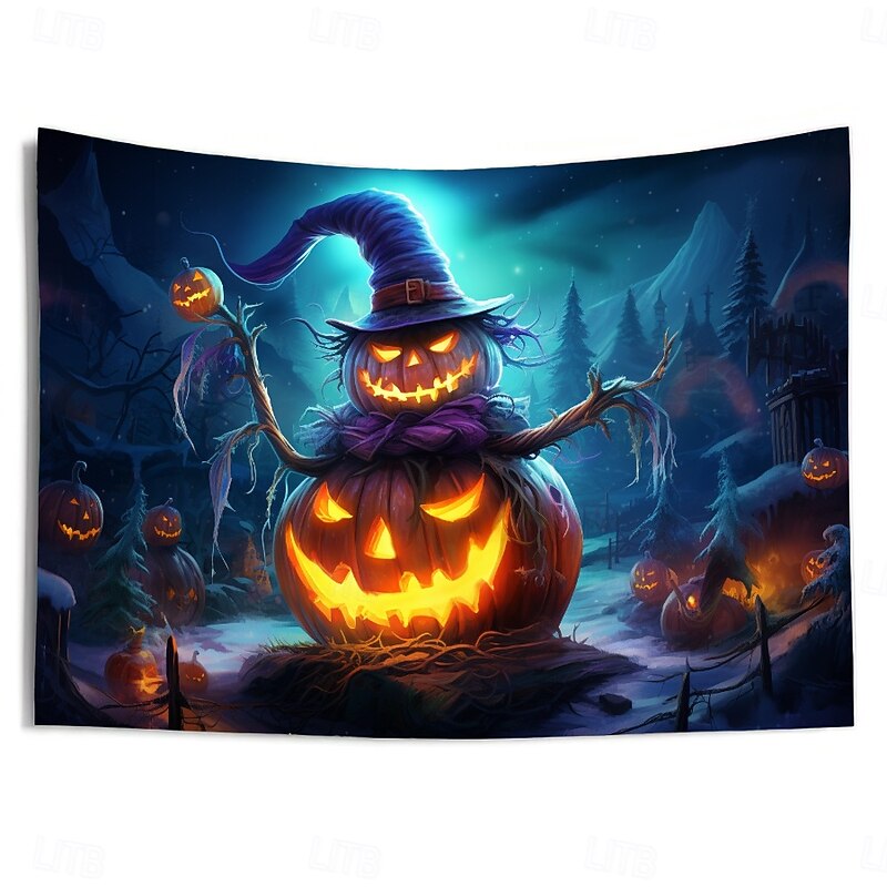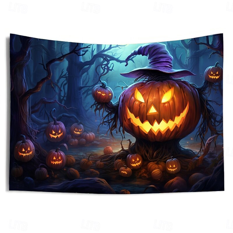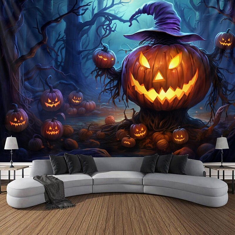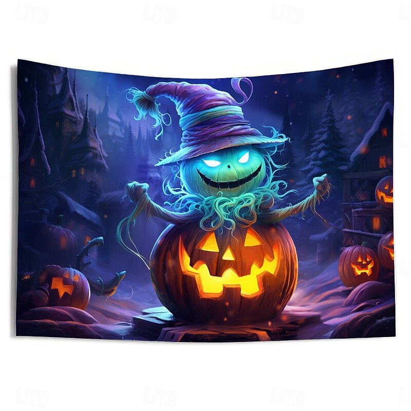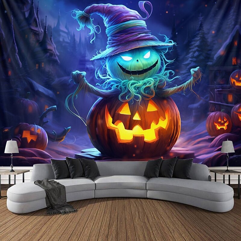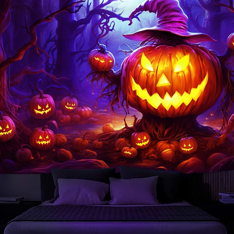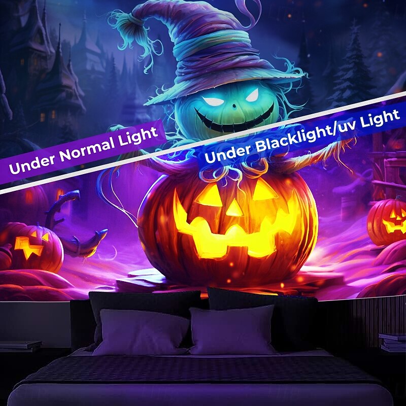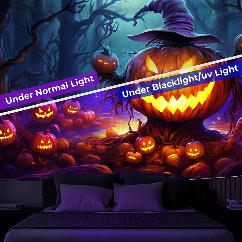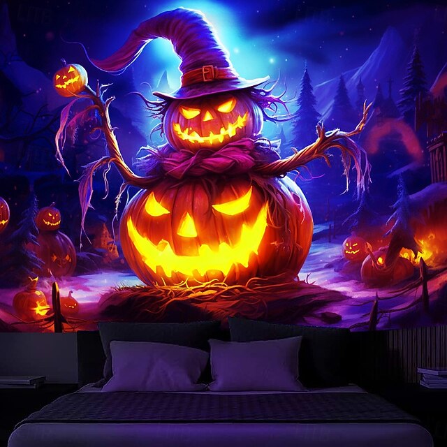 HOT ! Halloween Decorations Blacklight Tapestry Jack O Lantern UV Reactive Glow in the Dark Glow Party Psychedelic Trippy Misty Hanging Tapestry Wall Art Mural for Living Room Bedroom
