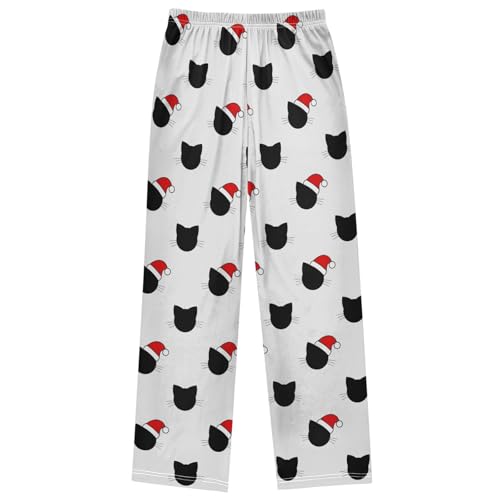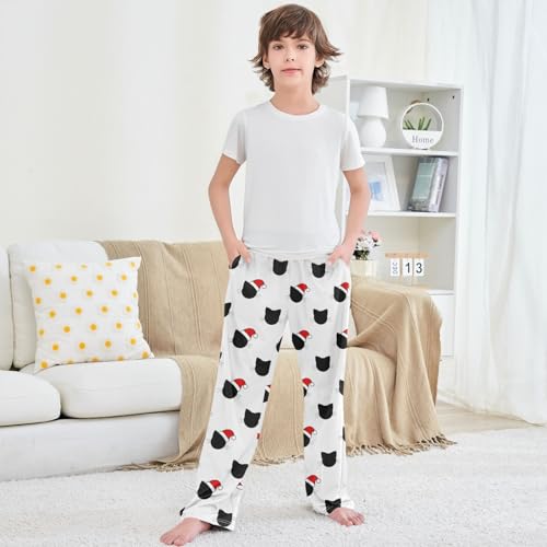 Boy's Lounge Pants Cute Cat Santa Hat Christmas Funny Kids Jogger Pants Elastic Waist Long Bottoms with Pockets 6-14Y 6
