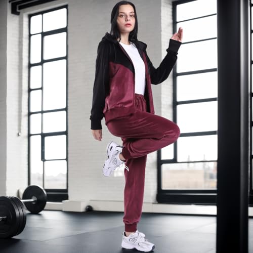 • LONG SLEEVE HOODIE: Crafted from a luxurious velvet fabric, this stylish suit is designed with long sleeves for warmth and style. The hoodie features two half kangaroo ribbed pockets and a silky zipper to keep your hands cozy.