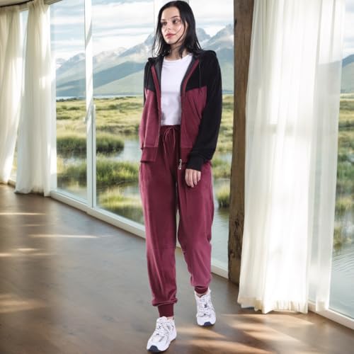 • WOMEN'S TRACKSUIT SET: Both comfortable and stylish. Comfortable hoodie and pants are the features of this two-piece set, quality velvet fabric ensures durability and soft touch to the skin, simple design is classic and durable and versatile