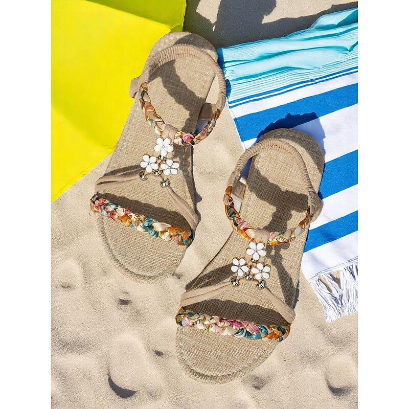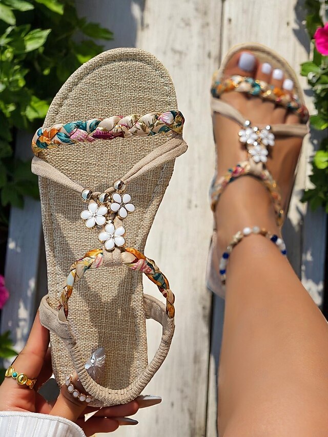 HOT ! Women's Floral Braided Flat Sandals – Bohemian Style Summer Shoes with Daisy Charm for Beach, Vacation & Casual Wear
