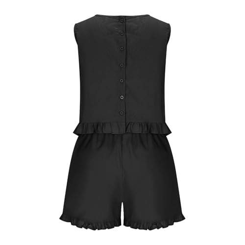 More information about Plus Size Cotton Linen 2 Piece Sets Women Sleeveless Ruffle Crop Top Tank Elastic Waist Shorts Sets Vacation Set