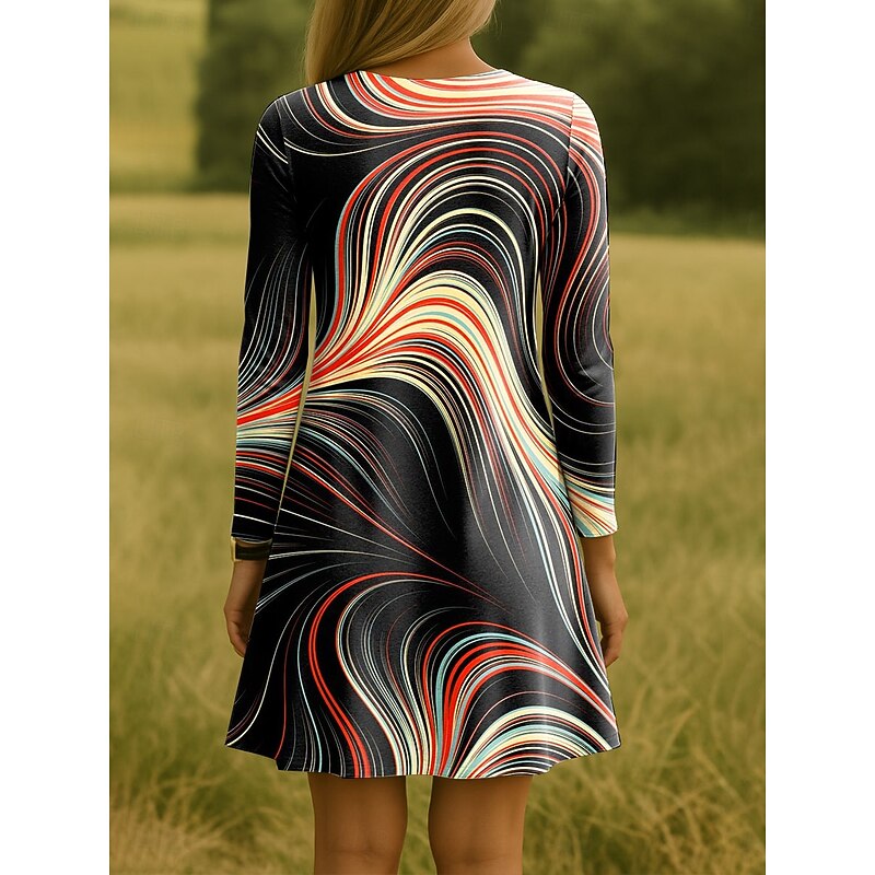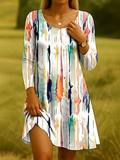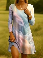 More information about Women's Mini Dress Crew Neck Long Sleeve Knit Dress Casual Dress T Shirt Dress Tee Dress Casual Regular Fit Ombre Graphic Black White Blue Spring Fall Winter