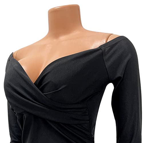 More information about Women's Sexy Deep V Neck Off Shoulder Ruched Bodycon Long Sleeve Midi Dress Evening Party Cocktail Dress