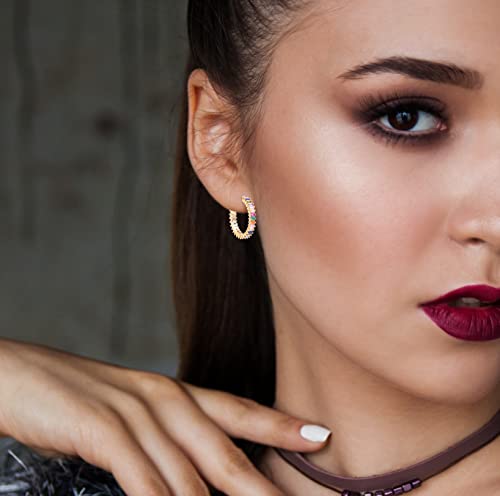 More information about Savlano 14K Gold Plated Cubic Zirconia Multicolor Rainbow Round Hoop Stud Earrings for Women Comes with a Gift Box