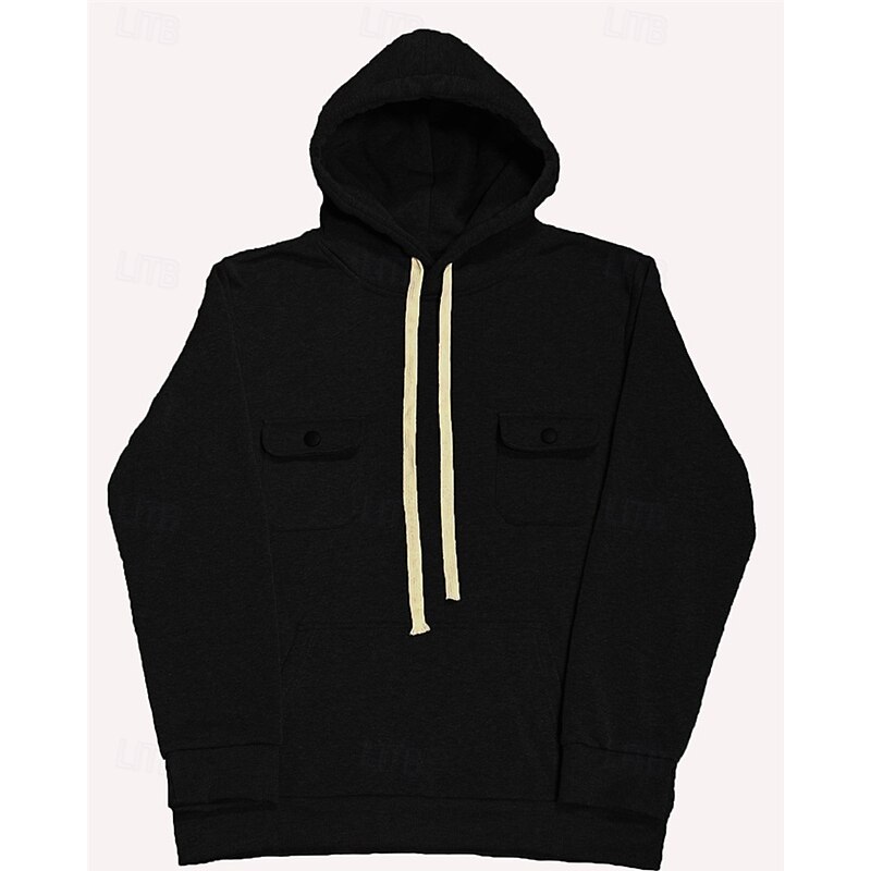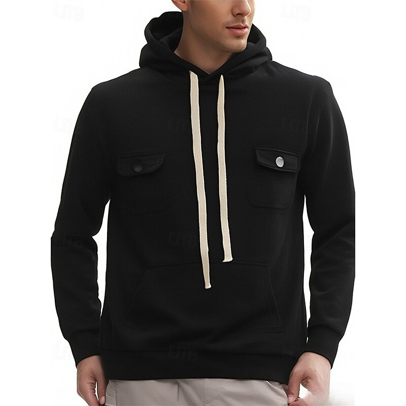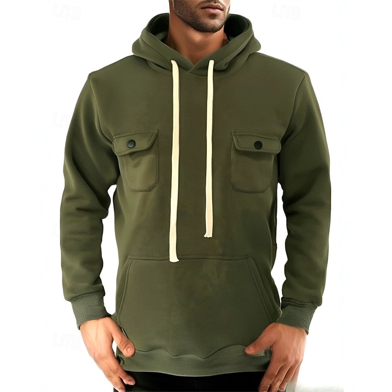 More information about Men's Hoodie Fleece Hoodie Black Army Green Khaki Dark Gray Hooded Plain Pocket Sports & Outdoor Daily Holiday Polyester Streetwear Basic Casual Fall Winter Clothing Apparel Hoodies Sweatshirts