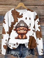 More information about Women's Pullover Casual Cow Street Dailywear Crew Neck Print Long Sleeve Brown Fall Winter