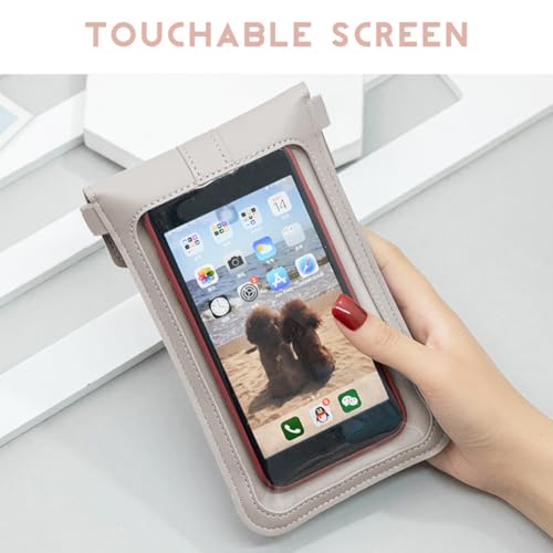 sought-after ! Women's Leather Crossbody Phone Bag Small Cellphone Purse Wallet Mini Waterproof Shoulder Bag with Card,Light Grey