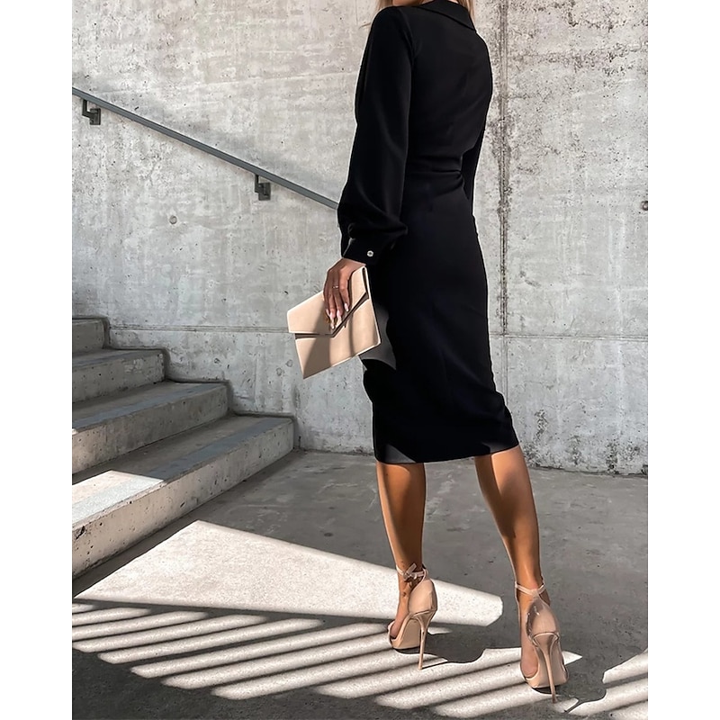 More information about Women's Mini Dress Casual Dress Summer Dress Stylish Casual Vacation Daily Date Regular Fit Plain Long Sleeve Lapel Black White Green Summer Spring
