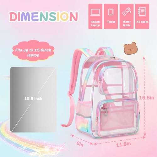 Pink Clear Backpack for Girls Heavy Duty Clear Bookbag, See Through Backpack for School, Stadium Events and Concert, Transparent Backpacks 6