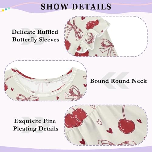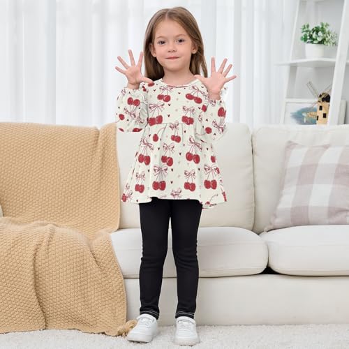 Red Bow Cherry Love Girls Shirts Cotton Long Sleeve Ruffle Toddler Tee Tops 4