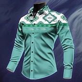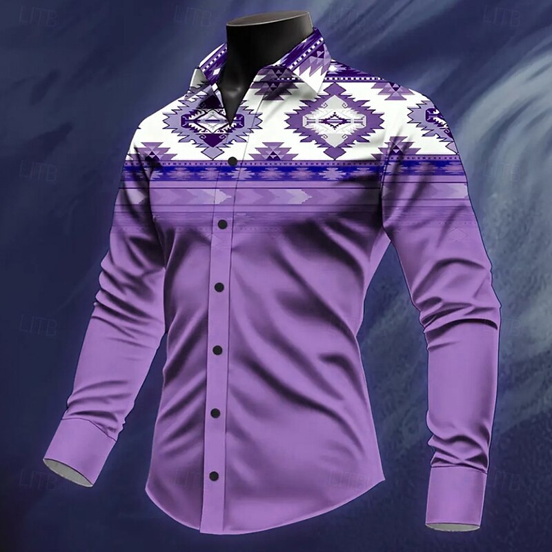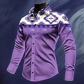 More information about Men's Aztec Ethnic Indian Culture Shirt Western Shirt Cowboy Shirt Long Sleeve Vintage Retro Outdoor Vacation Spring Fall Turndown 3D Print Linen Like Shirt Light Purple Purple Orange Green Dark Blue
