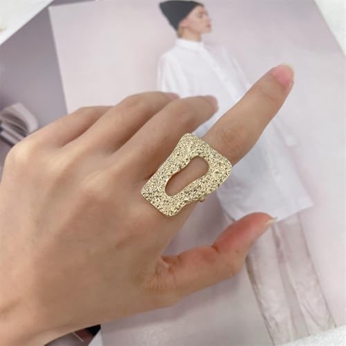 HOT ! Fashion Rectangle Statement Open Ring for Women Unique Gold Plated Hammered Irregular Geometric Adjustable Promise Finger Rings Comfort Fit Fashion Minimalist Trendy Jewelry for Her