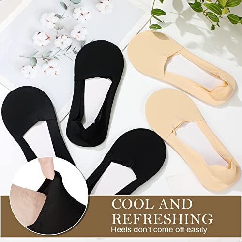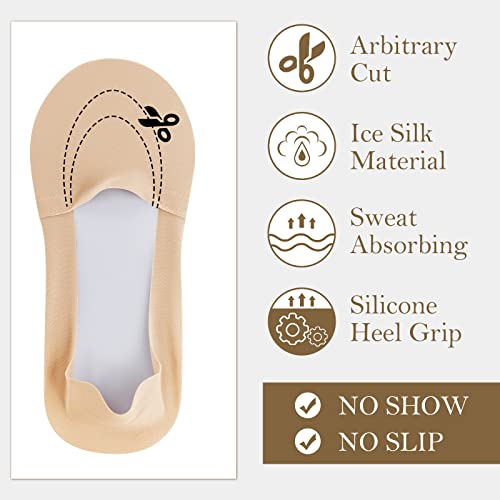 Ice Silk No Show Socks - 10 Pairs, Low Cut, Nonslip, Invisible, Thin (Black, Nude) 6