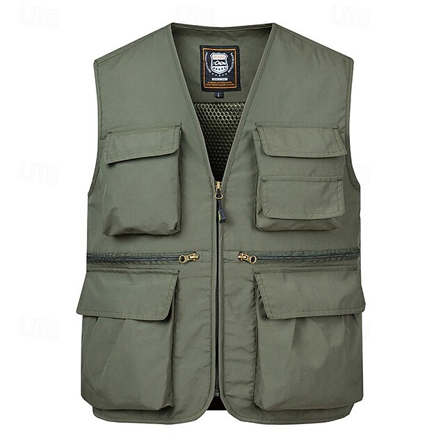 More information about Men's Vest Gilet Fishing Vest Hiking Vest Daily Date Vacation Fashion Casual Spring & Summer Pocket Nylon Breathable Comfortable Plain Zipper V Neck Regular Fit Black Red Navy Blue Royal Blue Vest