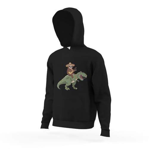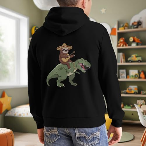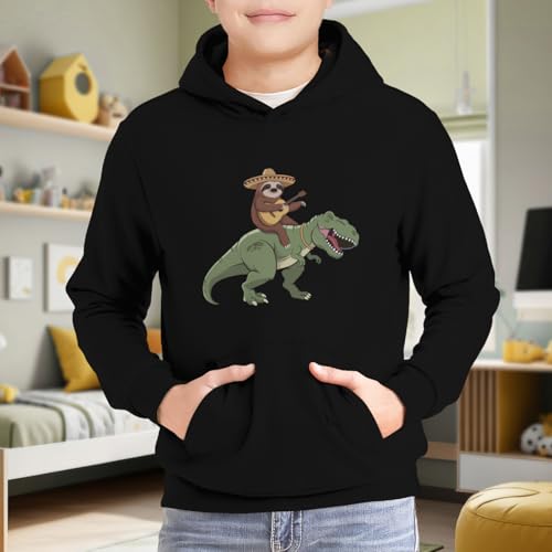 Kids Funny Mexican Sloth Riding T-Rex Cute Dinosaur Boys Girls Lightweight Kangaroo Pocket Fleece Hoodies 6