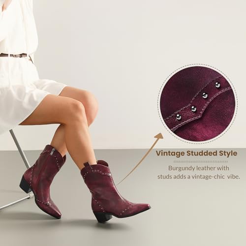 • Vintage Western Look: These women ankle cowboy boots feature classic western style and studded decor on the shaft and foot, giving a chic, timeless vibe.