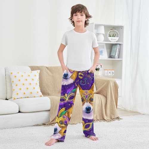 HOT ! Corgi Dog Confetti Beads Boys Long Pants Soft Trousers Elastic Waist Kids Lounge Bottoms with Pockets S-XL