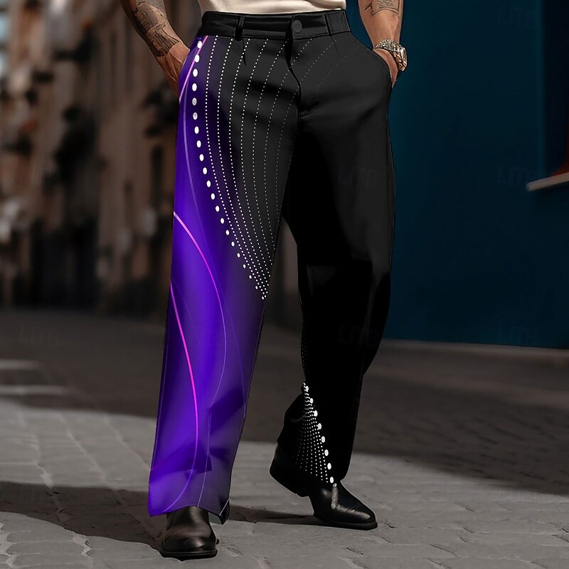 HOT ! Men's Geometric Gradient Line Dress Pants Trousers Suit Pants Mid Waist Casual Dailywear Holiday Relaxed Fit Flat Front Dress Pants with Side Pockets Spring Fall 3D Print Black / Green Black / Purple
