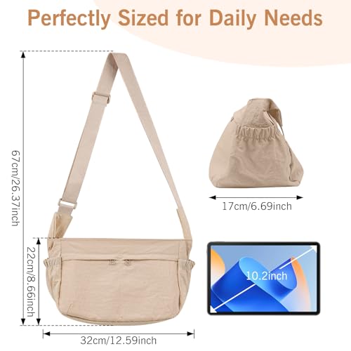 Canvas Crossbody Bag for Women, Shoulder Bag with Pockets, Casual Travel Messenger Bag 5