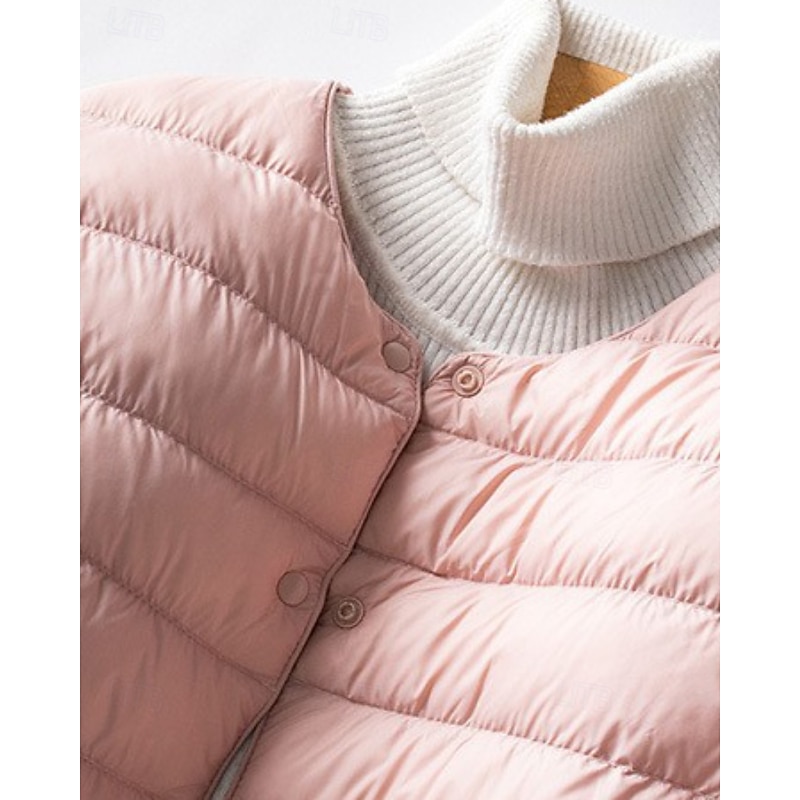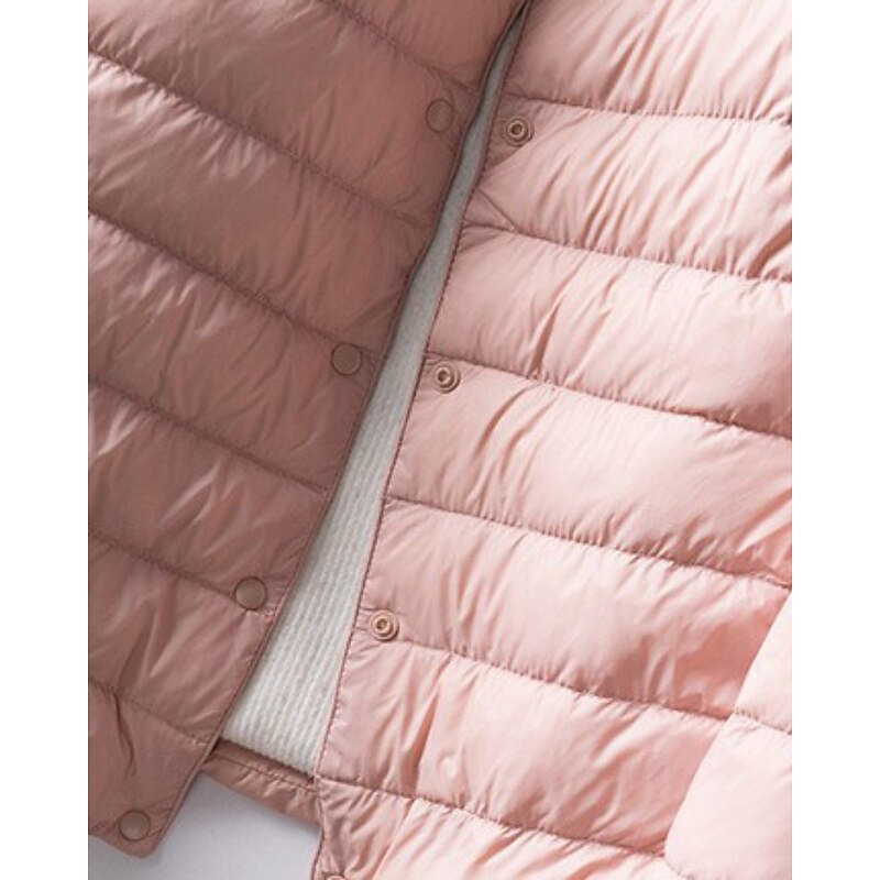 More information about Women's Down Jacket Puffer Jacket Comfortable Buttons Casual Plain Going out Weekend Single Breasted Regular Crewneck Regular Fit Long Sleeve Outerwear White Pink Wine Fall Winter