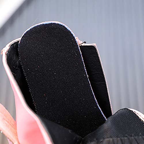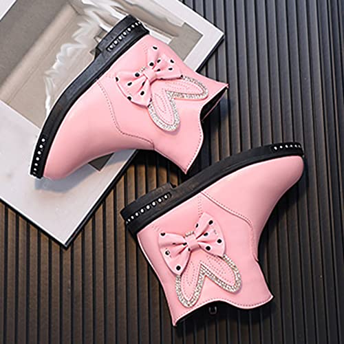 Winter Snow Boots Girls Ankle Boots Low Heel Flat Bottom Non Slip Bowknot Side Zipper Plush Warm Comfortable Booties (Pink, 5-5.5 Years Little Child) 4