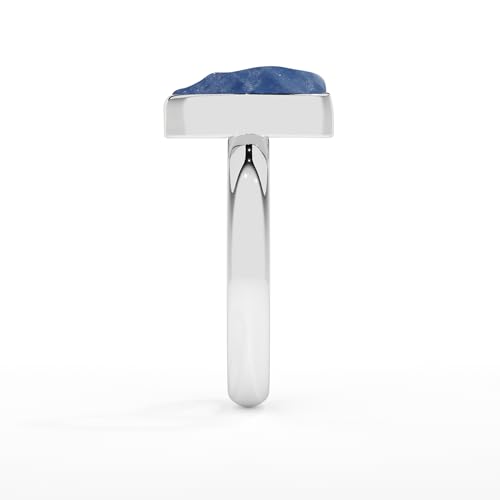 HOT ! Natural Raw Blue Sapphire Solitaire Rings for Women in Sterling Silver, September Birthstone Jewelry Gifts for Her Birthday, Anniversary, Christmas (Bezel-Set)