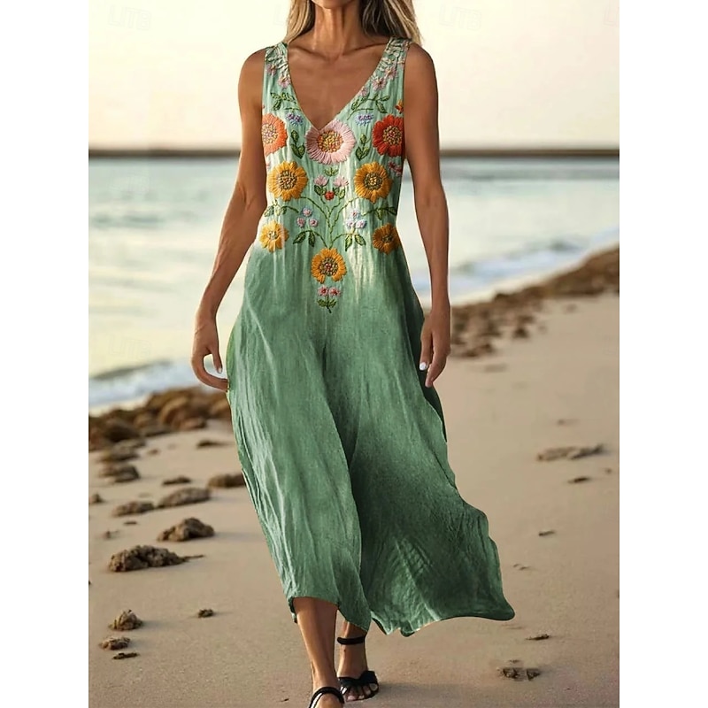 More information about Women's Long Dress Maxi Dress Casual Dress Tank Dress Summer Dress African Daily Holiday Beach Regular Fit Floral Sleeveless V Neck White Purple Green Dark Purple Summer