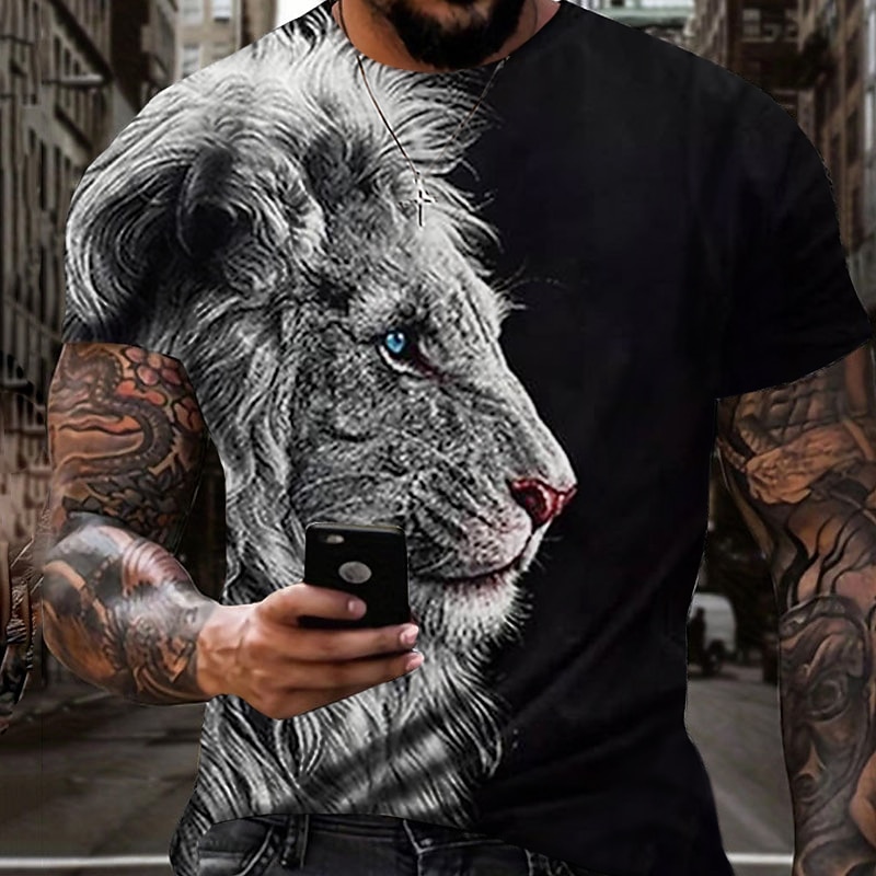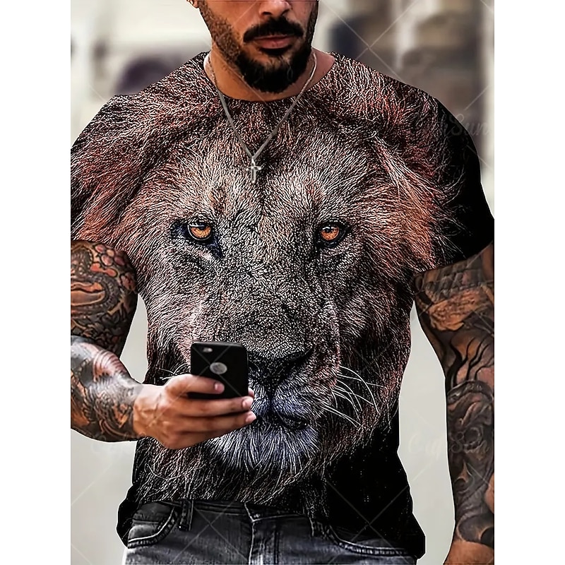 More information about Men's Graphic Animal Lion T Shirt Short Sleeve T shirt 3D Print Crew Neck Shirt Vintage Fashion Designer Outdoor Daily Sports Dark Brown Black Yellow Spring & Summer Clothing Apparel S M L XL 2XL 3XL