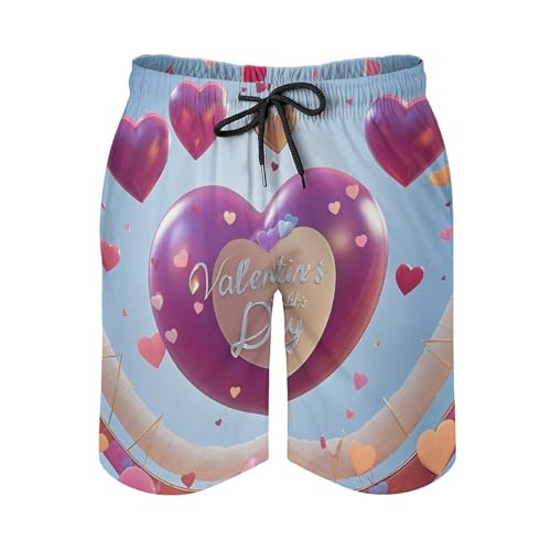 HOT ! Men's Swim Trunks Quick Dry Board Shorts with Pockets Beach Shorts Valentine's Day Love Heart Bathing Suits for Men