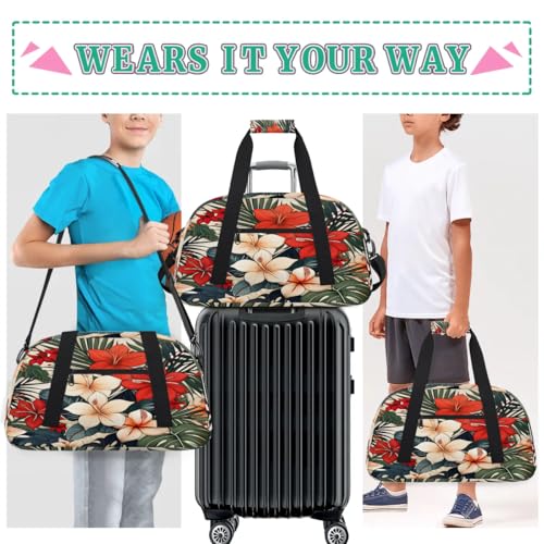 HOT ! Palm Poppy Flower Sports Duffle Bags Travel Duffle Bag Gym Bag Weekender Travel Bag Waterproof Overnight Bag Carry On Travel Tote Bag Dance Bags
