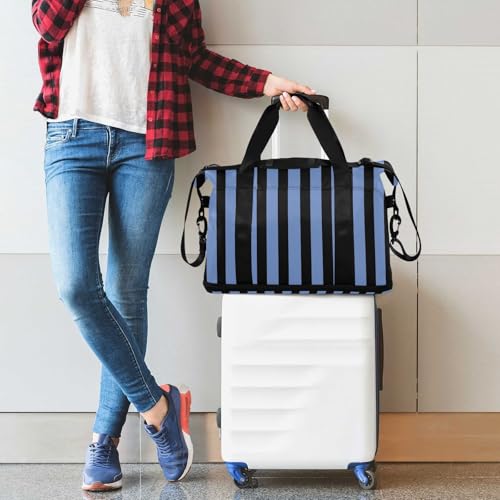 Black Blue Stripes Gym Bag for Women Sport Travel Duffel Bag Shoulder Weekender Overnight Bags with Wet Pocket & Shoe Compartment 5