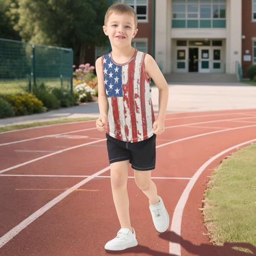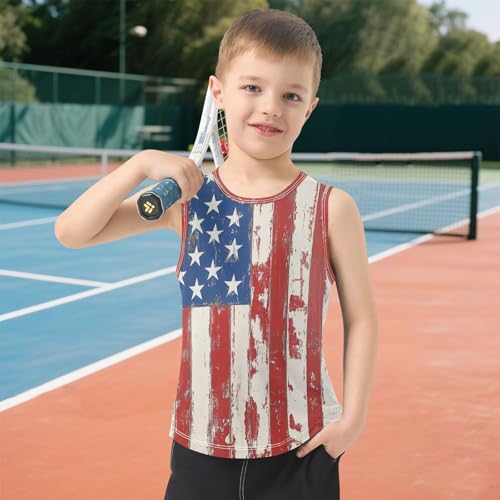 Boys Tank Top Shirts Wood Grain American Style USA Flag Sleeveless T-Shirts Crew Neck for Kids Clothing Children 5