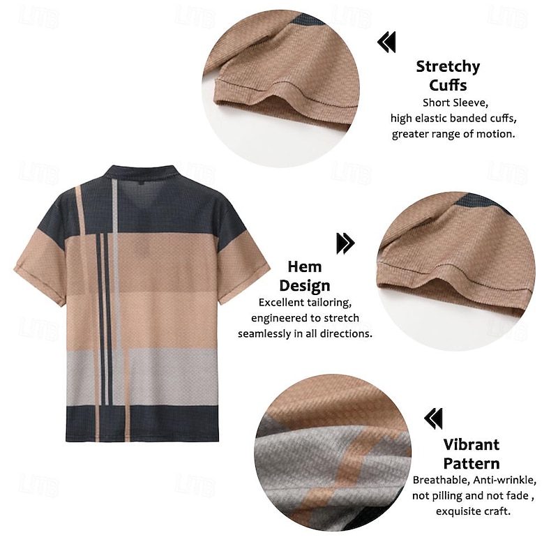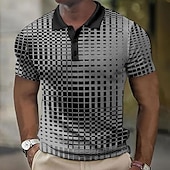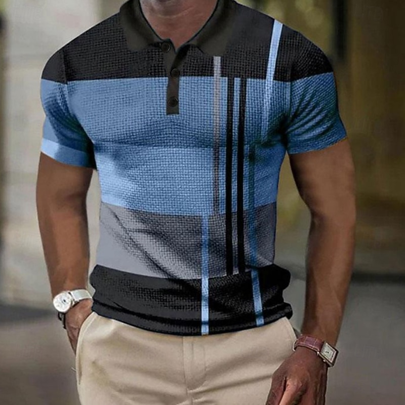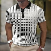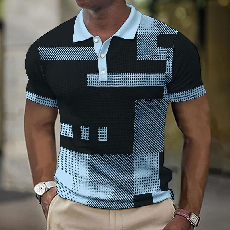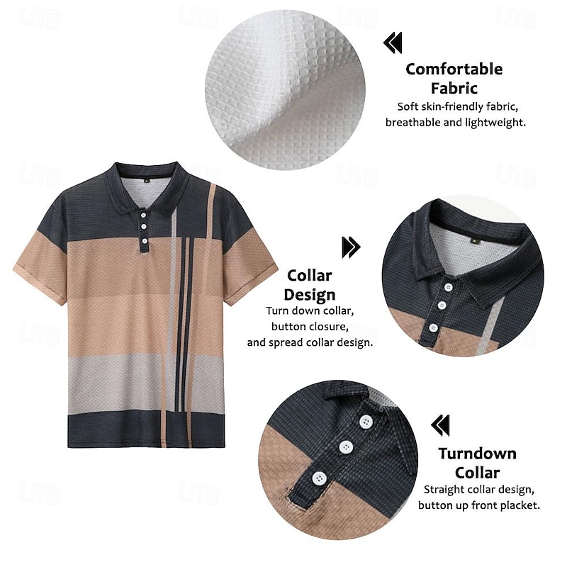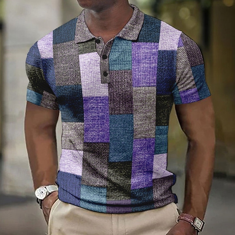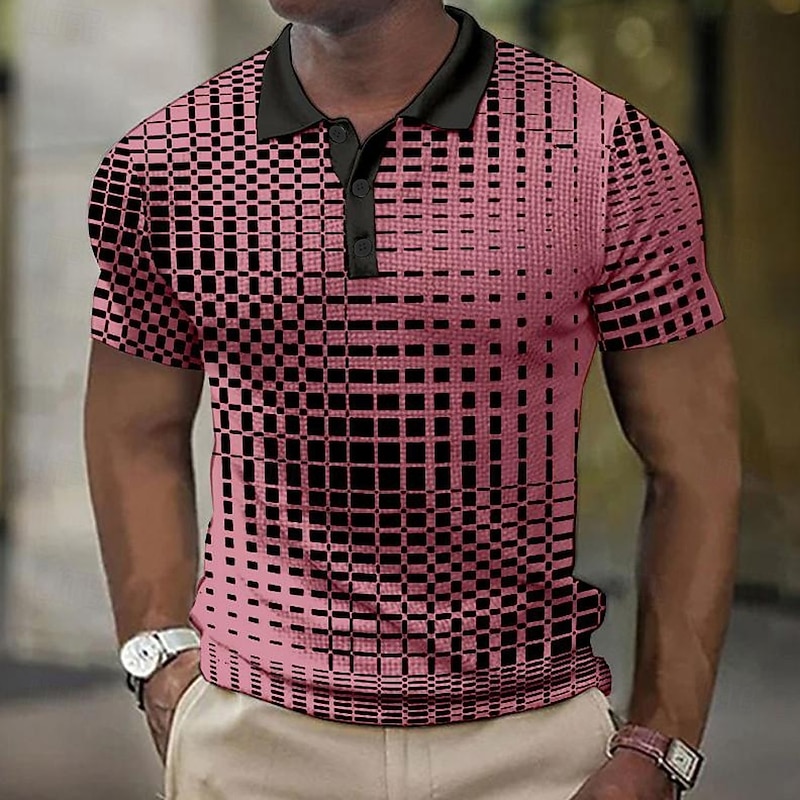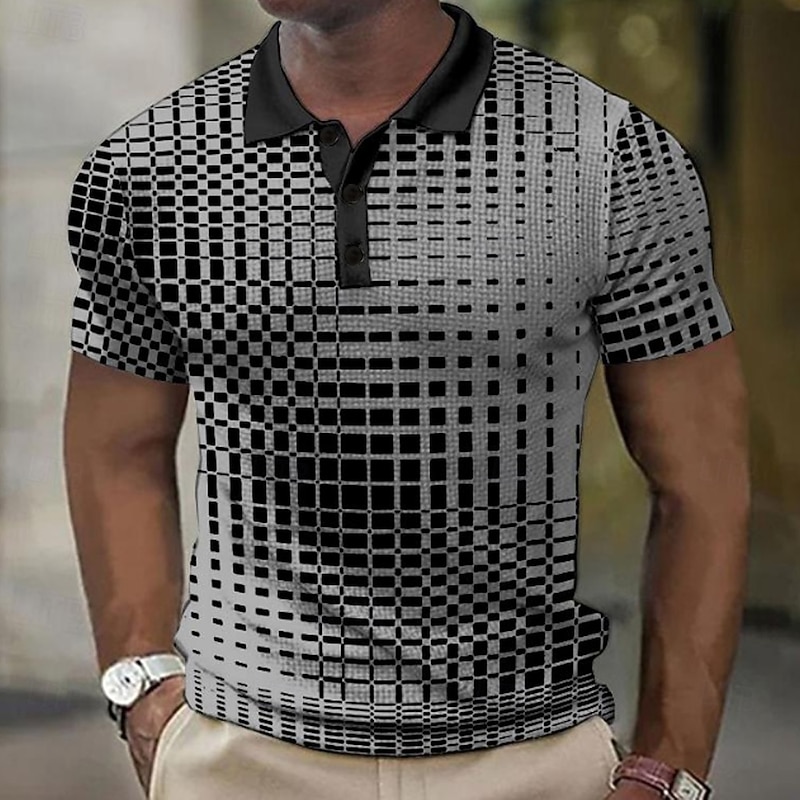More information about Men's Plaid Waffle Polo Shirts Golf Shirt Short Sleeve Polo Shirts Collared Shirts Vintage Casual Vacation Wear Formal Wear Festival Wear 3D Print Buttons Light Yellow Light Pink Black-White