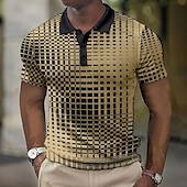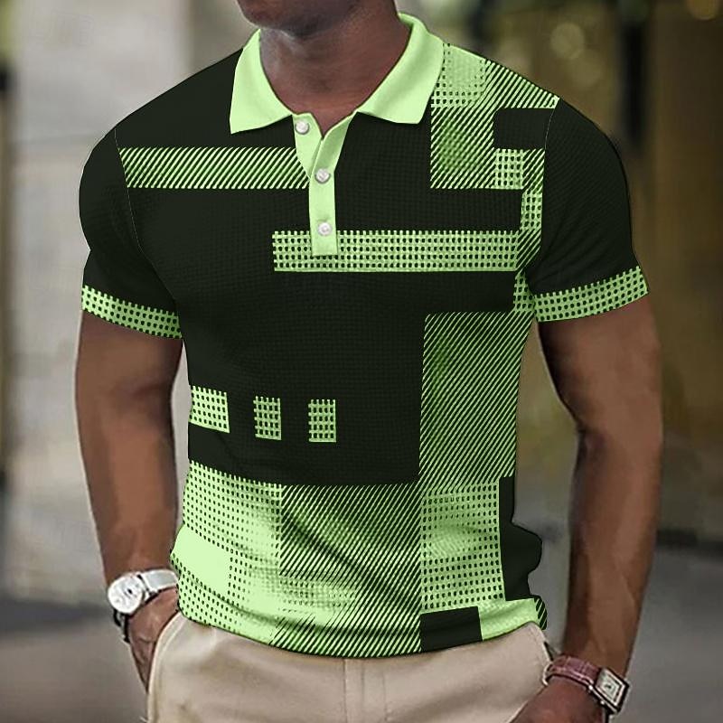 Men's Plaid Waffle Polo Shirts Golf Shirt Short Sleeve Polo Shirts Collared Shirts Vintage Casual Vacation Wear Formal Wear Festival Wear 3D Print Buttons Light Yellow Light Pink Black-White 39