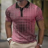 Men's Plaid Waffle Polo Shirts Golf Shirt Short Sleeve Polo Shirts Collared Shirts Vintage Casual Vacation Wear Formal Wear Festival Wear 3D Print Buttons Light Yellow Light Pink Black-White 36