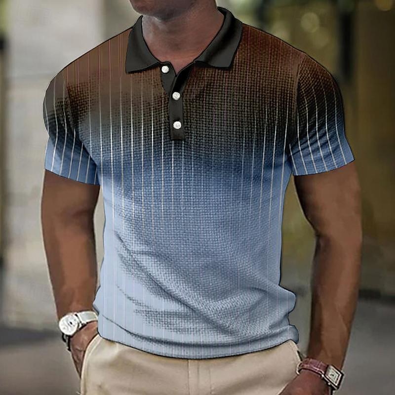 Men's Plaid Waffle Polo Shirts Golf Shirt Short Sleeve Polo Shirts Collared Shirts Vintage Casual Vacation Wear Formal Wear Festival Wear 3D Print Buttons Light Yellow Light Pink Black-White 53