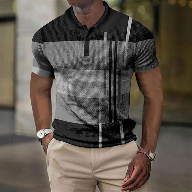 Men's Plaid Waffle Polo Shirts Golf Shirt Short Sleeve Polo Shirts Collared Shirts Vintage Casual Vacation Wear Formal Wear Festival Wear 3D Print Buttons Light Yellow Light Pink Black-White 33