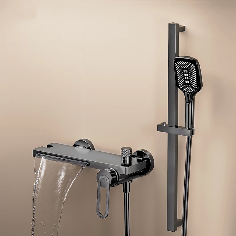 HOT ! Waterfall Bathtub Faucet, Minimalist Style Bathroom High Pressure High Flow Bath Shower Mixer Taps, Height Adjustable Handheld Shower Faucet Included, Ceramic Valve Insides